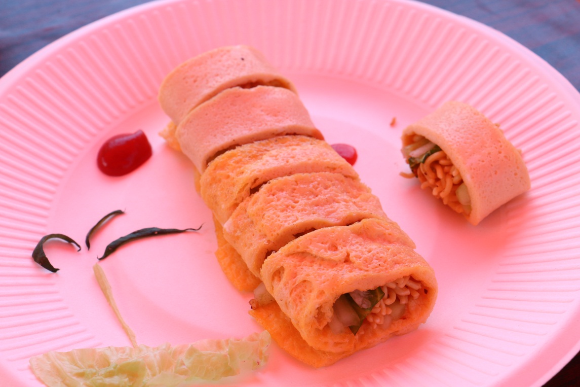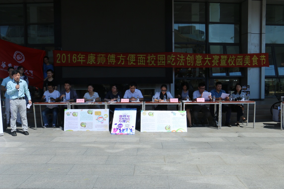奉贤校区一食堂前广场举办了方便面校园创意吃法大赛,本次活动是由中国食品科学技术学会、康师傅集团和宅宅爱动漫