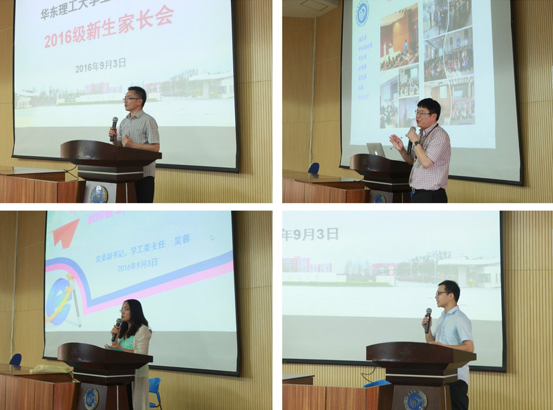 陆兵首先致辞热烈欢迎家长们的到来,同时介绍了学校和学院的办学历史,重点解读了家长关心的专业设置和培养方向问题。王启要对学院的教学工作、培养方案及师资力量等方面进行了详细介绍,并以就业率及相关数据说明专业的重要性和未来发展前景。吴蓉介绍了学院的学生事务工作情况,讲解了高中和大学学习、生活的不同之处,重点提醒学生必须注重学习,并希望家长督促学生形成正确的价值观,培养良好的习惯,尽快找到并坚持自己的梦想。在学院专门设置的问答环节,与会老师详细解答了新生家长所关心的问题。