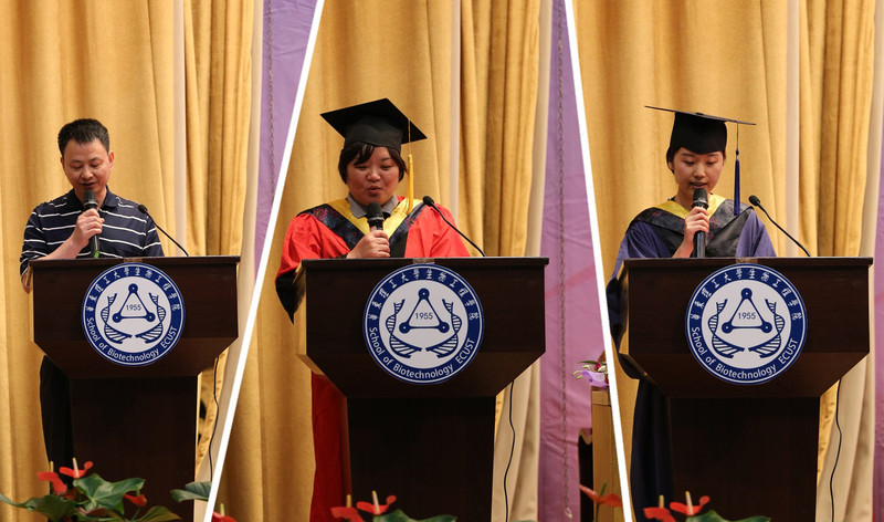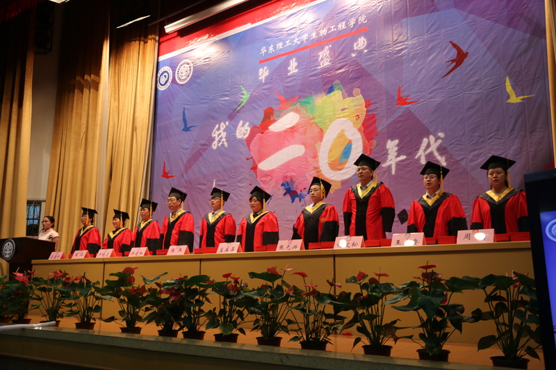 院长庄英萍、党委书记陆兵,院学位委员会主任张元兴,院学位委员会委员许建和、谭文松、储炬,副院长卢艳花、王启要,应用生物学系系主任吴海珍、食品科学与工程系系主任周英等为毕业生颁发证书及拨穗正冠。此外,2016届全体毕业生、2012级各班班导师、全体思政辅导员、学院专业教师代表、学生家长代表欢聚一堂,共同见证了这一庄严的时刻。毕业典礼由院党委副书记吴蓉主持。