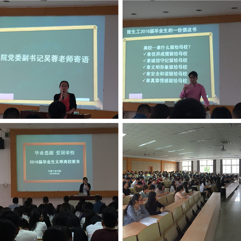召开了以“毕业思源 爱国荣校”为主题的毕业生离校教育大会,学院党委副书记、学工委主任吴蓉,2012级辅导员王超及2012级全体本科毕业生出席。