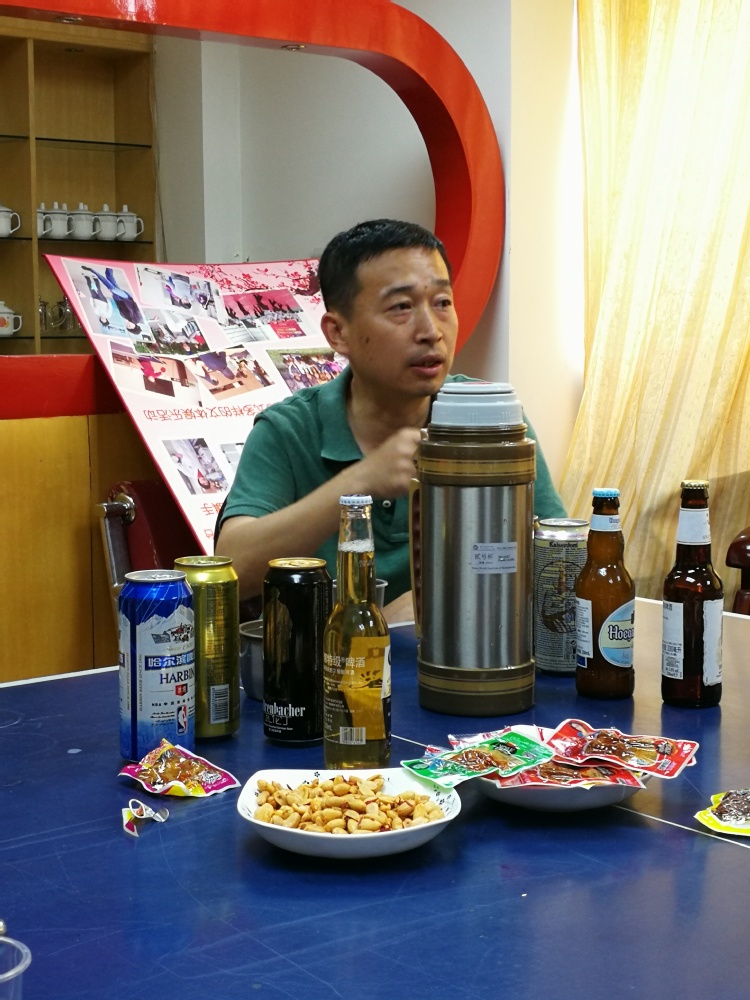 教师放下手头工作,来到工会教工小家实验18楼301室小憩,听网红教授王学东老师给大家讲那啤酒的故事。