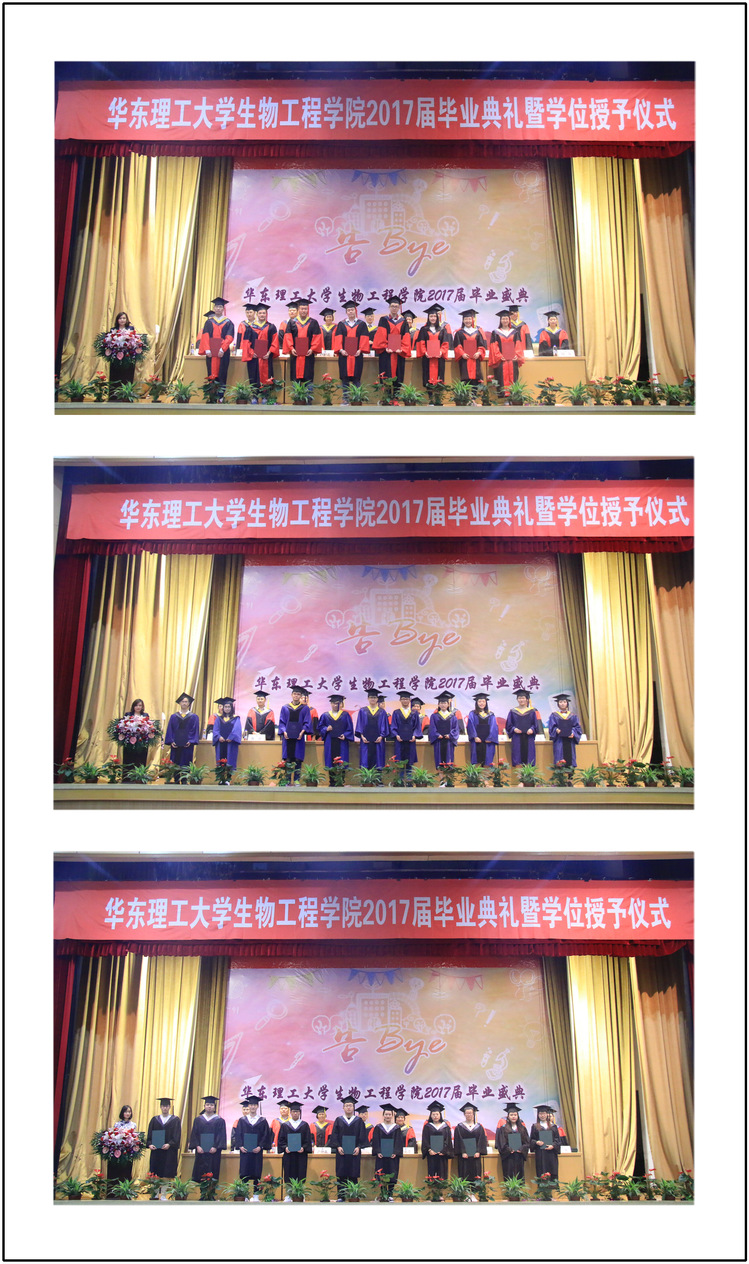 院长庄英萍在毕业寄语中祝贺2017届学生顺利毕业,感谢大家为学院发展做出的贡献,并希望大家子带着华理生工的印记,脚踏实地、勇于挑战、精诚合作,在自己选择的人生道路上,走出一片光明的未来。
