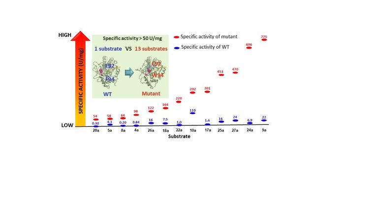 近年来,我国传统的化学化工及相关制造业面临着巨大的环保压力和节能减排的挑战,以工业酶为核心的生物合成技术,可以显著降低生产过程中的资源与能源消耗,减少污染物的排放,成为了企业创新驱动、转型发展、依法减排所亟需的的先进制造技术。然而天然来源的酶通常无法满足实际应用环境中的苛刻条件,因此需对其工业应用性能进行提升。针对野生型羰基还原酶CgKR1底物谱不够宽、催化活性不够高的缺陷,研究人员基于分子动力学模拟分析和长期的研究工作积累,推断出酶的底物通道上可能影响活性的两个关键氨基酸残基Phe92和Phe94;通过对酶进行结构改造,获得了一个对28种羰基底物催化活性显著提高的突变体CgKR1-F92C/F94W,并成功用于多种药物手性中间体的扩大制备。这一广谱、高效的生物催化剂为宅宅爱动漫