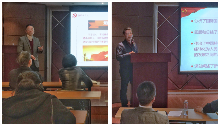 邱卫东结合党的十九大报告和教育部提出的学起来、教起来、传起来、研起来、干起来、实起来的要求分享了个人学习体会,作了题为“新时代、新挑战、新作为”的主题报告。他指出,大会的主题是不忘初心、牢记使命,高举中国特色社会主义伟大旗帜,决胜全面建成小康社会,夺取新时代中国特色社会主义伟大胜利,为实现中华民族伟大复兴的中国梦不懈奋斗。作为高校教师,要从把握历史方位、直面时代挑战、自觉有所作为等三个方面认真贯彻党的十九大精神,同时发挥教师专长,进一步更新工作内容,把党的十九大报告的要求切实落实到工作和学习中。