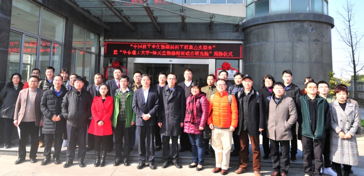 -恒天生物基材料联合研究院”宁波杭州湾新区基地揭牌仪式。宁波杭州湾新区管委会副书记、副主任徐方、宁波杭州湾新区经济发展局局长谢建明等领导以及三十多位我国生物化工、生物材料领域的专家和嘉宾共同揭牌仪式。