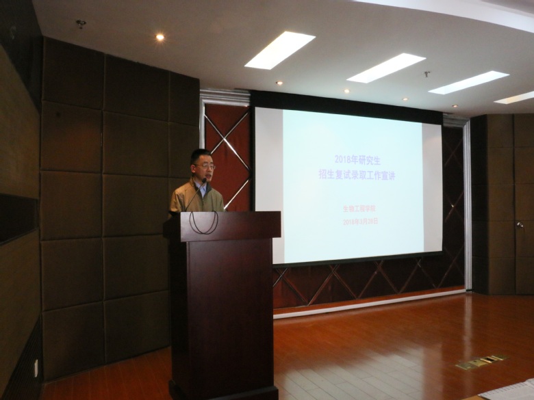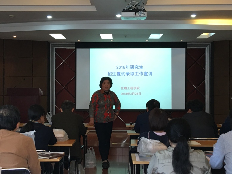 在实验十八楼315召开2018年研究生复试录取工作宣讲培训会。学院党委书记陆兵,院长庄英萍,副院长卢艳花,以及各研究生复试导师参加了此次会议。