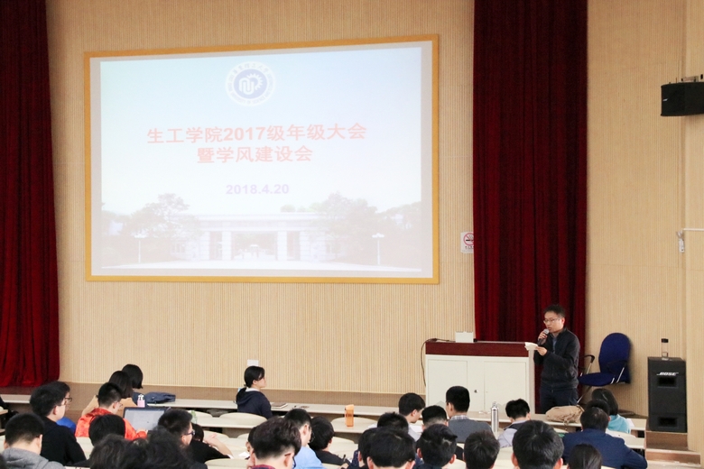 在奉贤校区A200教室召开2017级学风建设暨大类招生专业分流动员会,副院长王启要教授、学工委主任吴蓉老师、各系主任、班导师代表莅临现场为同学们答疑解惑,2017级全体学生出参加了此次会议,会议由2017级辅导员徐亚飞主持。