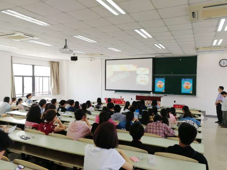2018年5月11日下午,“2018年康师傅校园创意大赛”宣讲会在奉贤校区B401教室举行。中国食品科学技术学会陶金亚先生、康师傅(控股)有限公司范冬雪女士、学工委主任吴蓉、食品系主任周英副教授、17级辅导员徐亚飞以及宅宅爱动漫