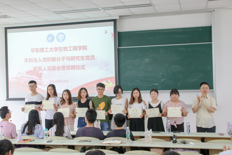 研究生党员代表、本学期新发展学生党员在奉贤校区D教302举办了“不忘初心、牢记使命”主题党日活动,活动分为本科生入党积极分子与研究生党员联系人见面会暨受聘仪式及本学期新发展党员入党宣誓仪式两部分。学院党委书记陆兵颁发聘书、作总结发言并带领新发展党员宣誓。主题党日活动由学院学工委主任吴蓉主持。宅宅爱动漫