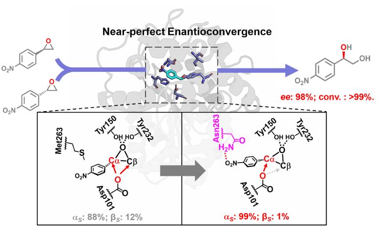 图片说明:绿豆环氧水解酶经过区域选择性改造后实现近乎完美的对映汇聚