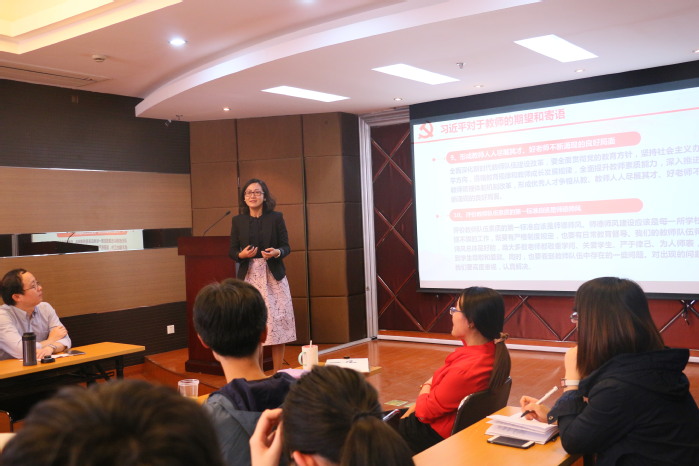 学工委主任吴蓉提到,习近平总书记强调教育是国之大计、党之大计,并对教师提出了新要求,大学之大,在于大师,教师是大学的根本所在,教师要时刻铭记教书育人的使命,要有“捧着一颗心来,不带半根草去”的奉献精神,要做“四有”好老师,要努力成为塑造学生品格、品行、品味的“大先生”。