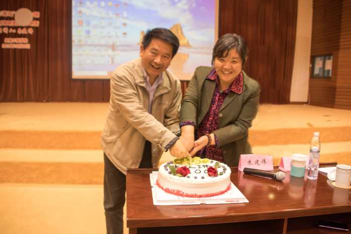 在互动提问,学生们就生物科学、生物技术、生物工程等专业在生物制药中的应用以及生物药物如何治疗基因遗传病等疑惑进行了咨询,也得到了朱建伟的耐心解答。讲座尾声,庄英萍邀请朱建伟共同切开了祝福华理生日快乐与生工讲坛100期圆满举办的蛋糕,并分享给了现场学生们。朱建伟再次表达了殷切的期盼,希望学弟学妹们能在大学时光刻骨学习、勤奋求实、收获真知,培养能力,进一步传承并发扬华理精神。