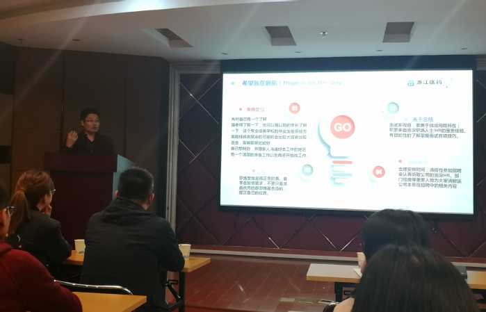 本次活动首先邀请了上海透景生命科技股份有限公司应用工程部总监张晓锋从“我是怎么面试”的角度,为准研究生们分享了在面试过程中需要注意的事项。随后,上海透景生命科技股份有限公司人事部容妍洁总经理以“求职经验分享”为题,从简历书写到面试细节问题等方面为大家做了相关经验分享。最后,浙江医药股份有限公司招聘主任唐仁喜总经理以“职步向前·相约在浙”为题,从秋招和春招的重要性、简历制作技巧和如何应对面试等方面,从企业角度为学生提供了求职参考。活动由宅宅爱动漫