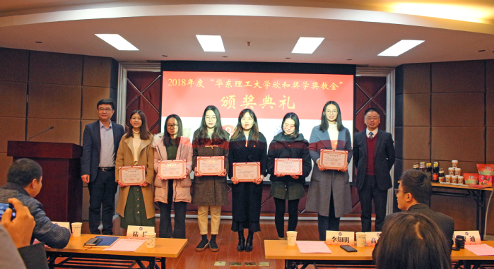 欣和奖学奖教金、卫康奖学奖教金颁奖典礼在实验十八楼315隆重举行。山东欣和食品工业有限公司销售总监李知明先生、华东区域经理高古风先生、销售经理曹通先生、李蓉女士和李萱女士出席颁奖典礼,学院党委书记陆兵,副院长赵黎明、学工委主任吴蓉及师生代表60多人出席仪式。