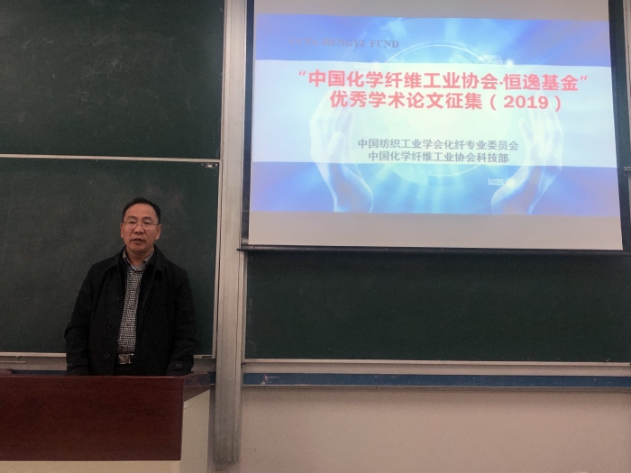 做了关于“中国化学纤维工业协会·恒逸基金优秀学术论文征集(2019)”的宣讲会报告,宣讲会由赵黎明教授主持。