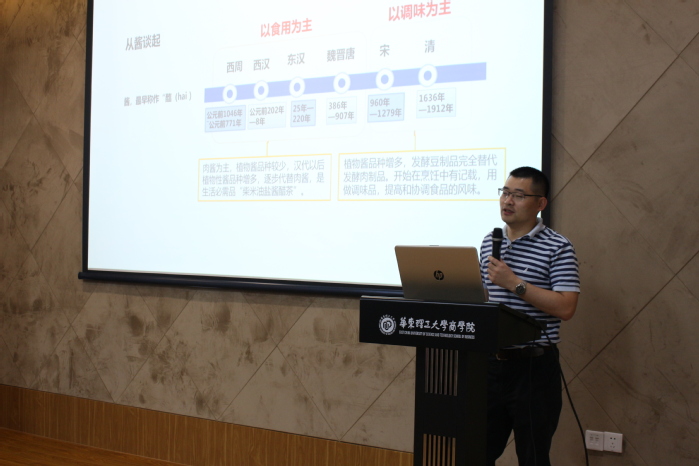 荣誉校友郑宇教授作了题为中国调味品行业市场现状与发展趋势的报告,报告为我们分析了行业现状,以及未来调味品的发展趋势。目前调味品行业发展呈现的趋势有消费需求变化,催生了新的消费市场;产业结构调整,细分产业增长速度不同;调味品行业国际化进程加快等。郑教授还为我们重点分析了细分产业的发展状况,并为本次大赛提供了建议和思考。