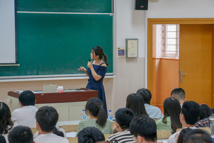 研究生会主席方婷婷向新生们展示了研究生会去年一年的精彩活动,并分享了自己成长的感悟,希望师弟师妹们加入到研会的队伍,通过协调、参与各项活动,丰富研究生生活,同时锻炼自己。
