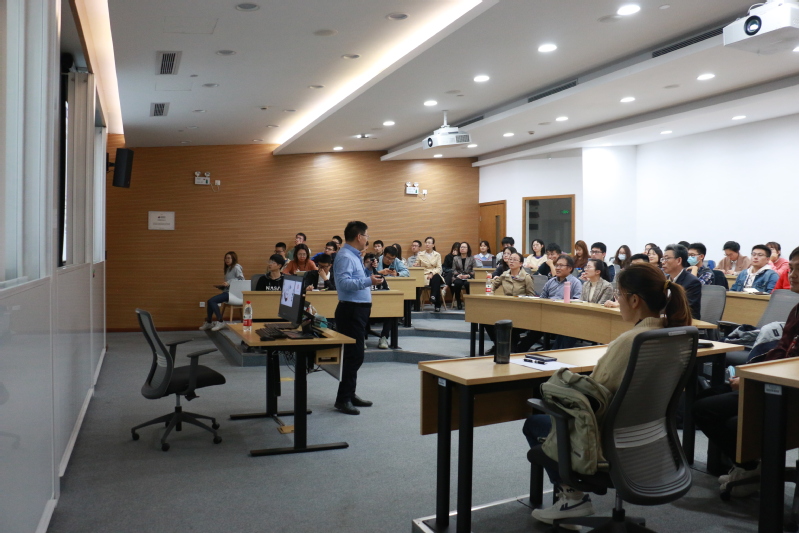 聆听完精彩的讲座,学院师生与袁其名教授就合成生物学体系设计等问题进行了深入的交流讨论。袁教授的报告让在场师生对合成生物学有了更深刻的认识,在解决科研问题上有了新的思路和方法。大家特别感谢袁教授带来的精彩讲座。