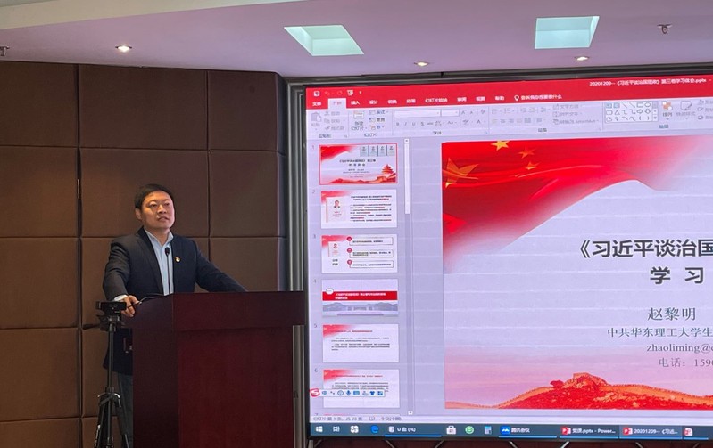 党委书记赵黎明受邀为大家上了一堂“《习近平谈治国理政》第三卷学习体会”的党课。会议由联合三教工党支部书记安法梁主持。