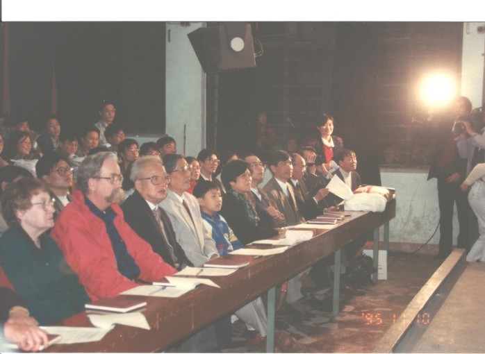图片说明:1995年唐孝宣(前排左3)担任大学生英语节评委
