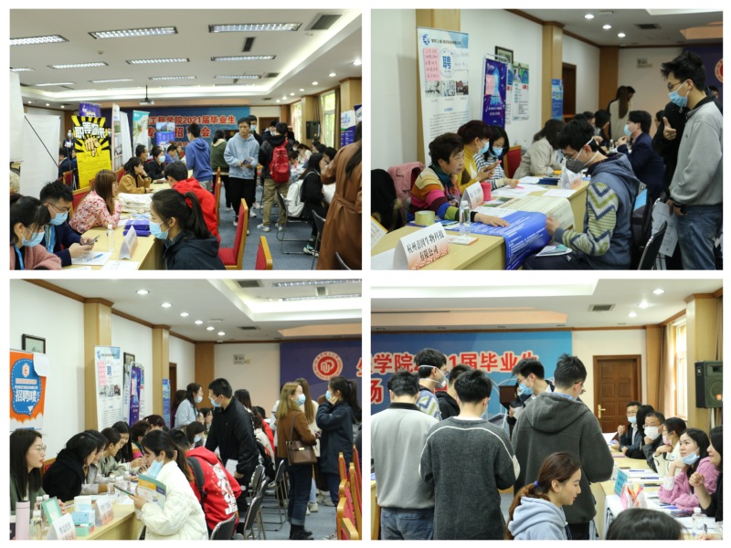 2021届毕业生就业工作的有效推进,4月15日下午,生物工程学院2021届毕业生专场招聘会在徐汇校区逸夫楼演讲厅顺利举办。本场招聘会汇聚了41家国内外知名用人单位,提供招聘岗位1000余个,吸引了众多应届毕业生前来咨询和应聘。学院院长庄英萍、党委副书记陆兵、左鹏,学工部副部长、校就业指导中心主任郑东、副主任周全华亲临现场,与用人单位和求职学生亲切交流。