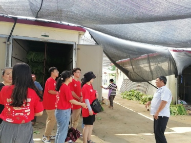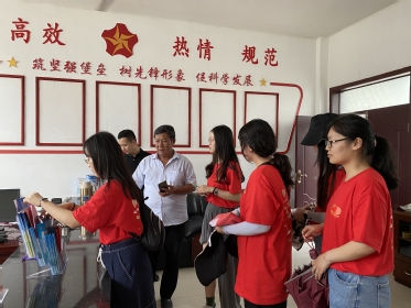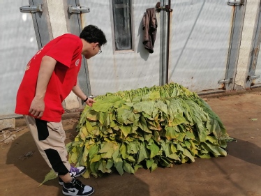 上硠村书记王敬平也赶来与实践团成员热切交流。他向实践团介绍当地特色的农产品——小米、板栗、绿豆、核桃等,随后带领实践团参观上硠村特色的黄烟种植产业。山东省烟草公司派驻“第一书记”利用自身专业所长大力发展村子的黄烟种植业,将黄烟加工设备规模化、现代化、产业化,既提高效率,节省人力,还大大提升了收购价格,为村民增收致富。同时,村里设立扶贫加工点,吸纳村民家门口就业,帮助村民增收脱贫。