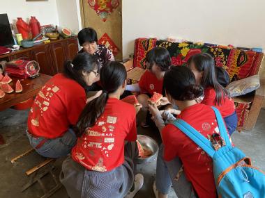 最后一站,实践团一行来到临沂市平邑县黄草坡村,这里有着的“谷比米贵”的说法,说的是黄草坡村的谷子要比周边村庄的小米还要贵。实践团成员躬身田间地头,了解谷子长势,同时对作物和土壤进行采样,向农户了解黄小米的种植历史和食用方法,去合作社参观了小米简易处理的大型设备机器,向工作人员和村书记了解黄草坡黄小米的销售途径、收购情况和收入利润等,对黄草坡黄小米有了更全面的认识,也明晰了该村发展中存在的问题——村子处于山涧沟壑之中,道路不够通畅,大型机械化收割设备因地形和空间原因不方便使用,作物种植还是主要依靠高龄劳动力。