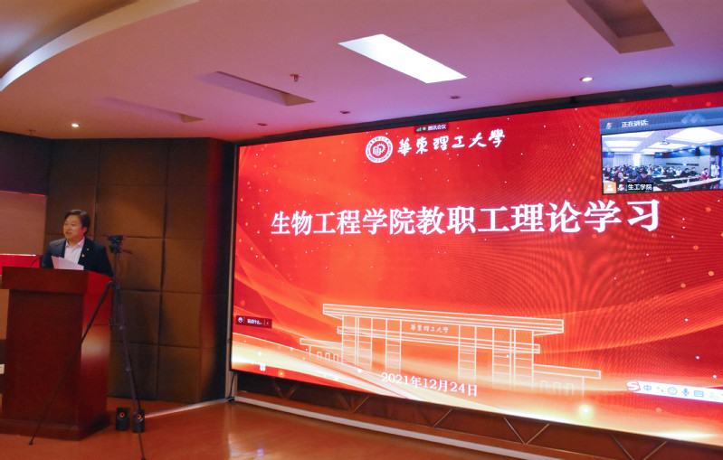 领导、教工党支部书记、生工系教师、应用生物学系教师、食品系教师和学院办公室教师现场参加报告会,其他教师通过腾讯会议在线参加。