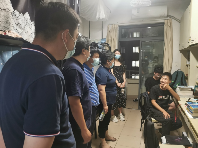 随后学院领导深入学生宿舍,与同学们进行了亲切的交流,仔细询问了同学们的暑期生活情况、返校情况及专业课程学习情况等,提醒同学们自觉遵守学校相关规章制度,注意人身和财产安全,鼓励同学们保持积极乐观的心态,勤奋学习、开拓创新,以饱满的精神迎接建校70周年,以实际行动迎接党的二十大。