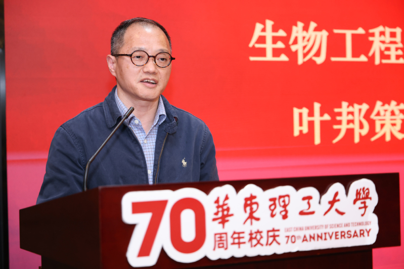 叶邦策代表学院对浙江医药股份有限公司和张国钧校友捐赠、设立浙江医药教育基金表达由衷的感谢,并对学院的学科发展、人才培养、师资队伍以及在生物医药产业发展中的贡献做了详细介绍,最后表示学院将更加积极主动对接国家重大战略需求,促进科研成果转化,推动引领性创新,不断提升校友服务工作的质量和水平,在生物医药人才队伍建设、科学研究和社会服务等方面共谋发展、合作共赢,开创校企合作新局面。