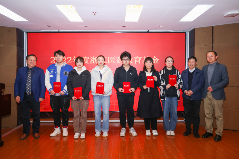 随后进行了2022年度浙江医药教育基金颁奖仪式,张国钧、金一平、孙新强为获奖学生代表颁发个人荣誉证书,获奖学生纷纷表达了对浙江医药股份有限公司和张国钧校友的感谢。