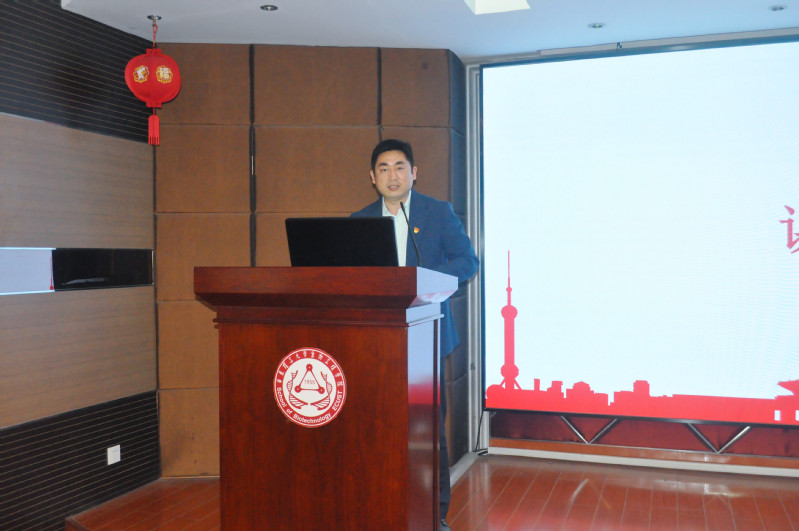 党委副书记左鹏主持报告会,学院师生党支部书记、支委现场参会,其他教师在线参会。