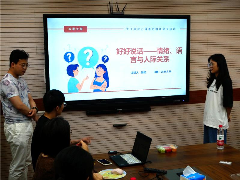 举办了一场主题为“好好说话:情绪、语言、人际关系”的专题培训。本次培训特邀马克思主义学院易如副教授,为学院各班级心理委员提供专业指导。