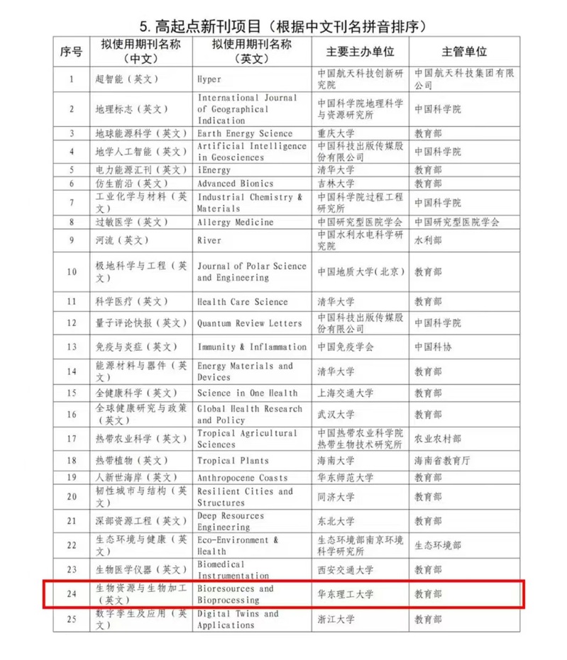 主办的《生物资源与生物加工(英文)》(Bioresources and Bioprocessing,简称BIOB)从全国208个申报期刊中脱颖而出,成功入选高起点新刊项目。这是该刊发展过程的又一重要里程碑,彰显了国内学术界和科技出版界对其学术质量和传播影响力的高度认可,为进一步提升期刊的国际影响力奠定了坚实基础。
