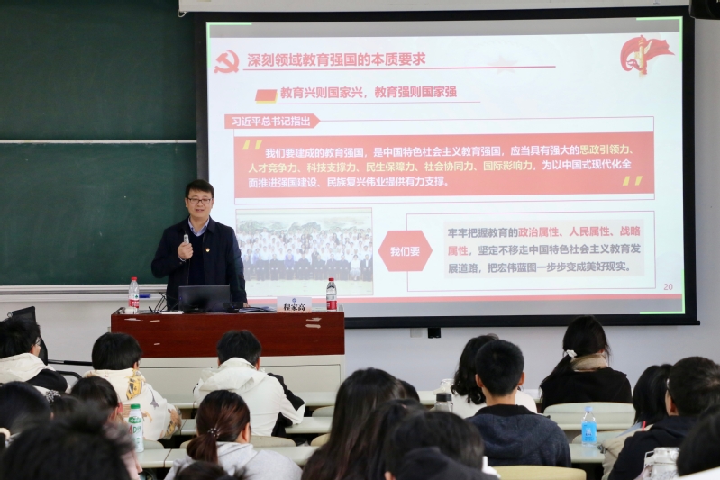 党委书记程家高以“牢记使命 挺膺担当,为建设教育强国贡献力量”为题,为入党积极分子讲授专题党课。