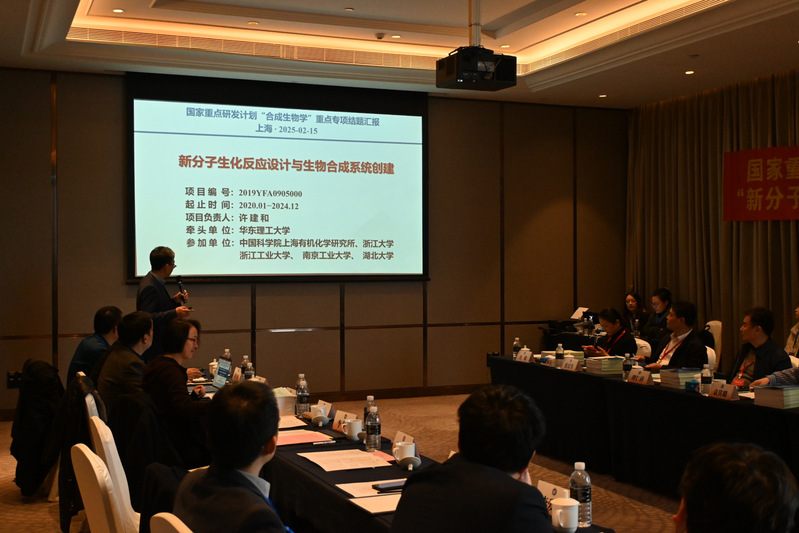 该项目于2019年获批立项,实施时间为五年(2020-2024),项目聚焦人工新酶的设计和合成途径的重构,旨在突破天然生化反应的各种局限,形成全新的生物合成路径,实现功能分子的高效生物制造。项目负责人许建和教授围绕项目的研究背景、研究目标、研究任务、研发团队、考核指标、创新成果、组织管理以及经费使用等方面,进行了总体汇报。随后,课题一负责人郁惠蕾教授、课题二负责人李爱涛教授、课题三负责人吴坚平教授和课题四负责人朱宁教授分别汇报了课题的完成情况和主要成果。