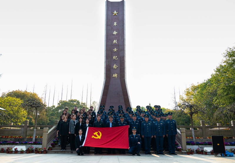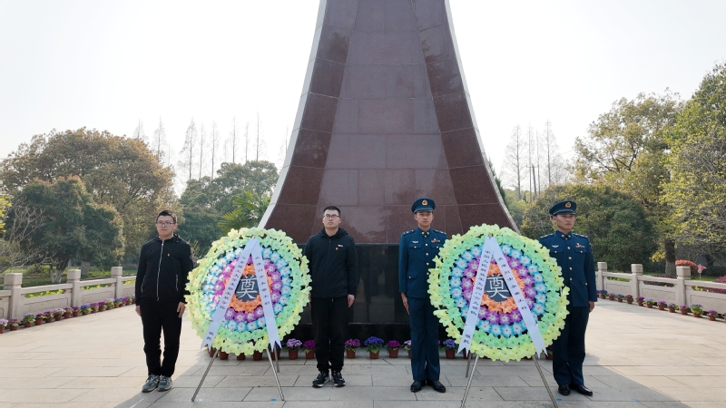 烈士陵园广场庄严肃穆,全体人员整齐列队,高唱国歌,嘹亮歌声激荡爱国情怀。两名党员代表缓步上前,向烈士纪念碑敬献“英雄烈士永垂不朽”花圈挽联,全体成员肃立默哀三分钟,向长眠于此的革命先烈致以深切哀思与崇高敬意。